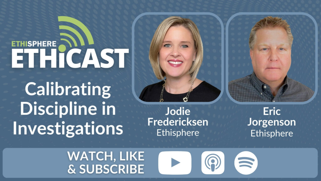 In this episode, Ethisphere’s Jodie Fredericksen and Eric Jorgenson discuss how calibrating discipline is an important—and yet often overlooked—aspect of an effective workplace investigation.