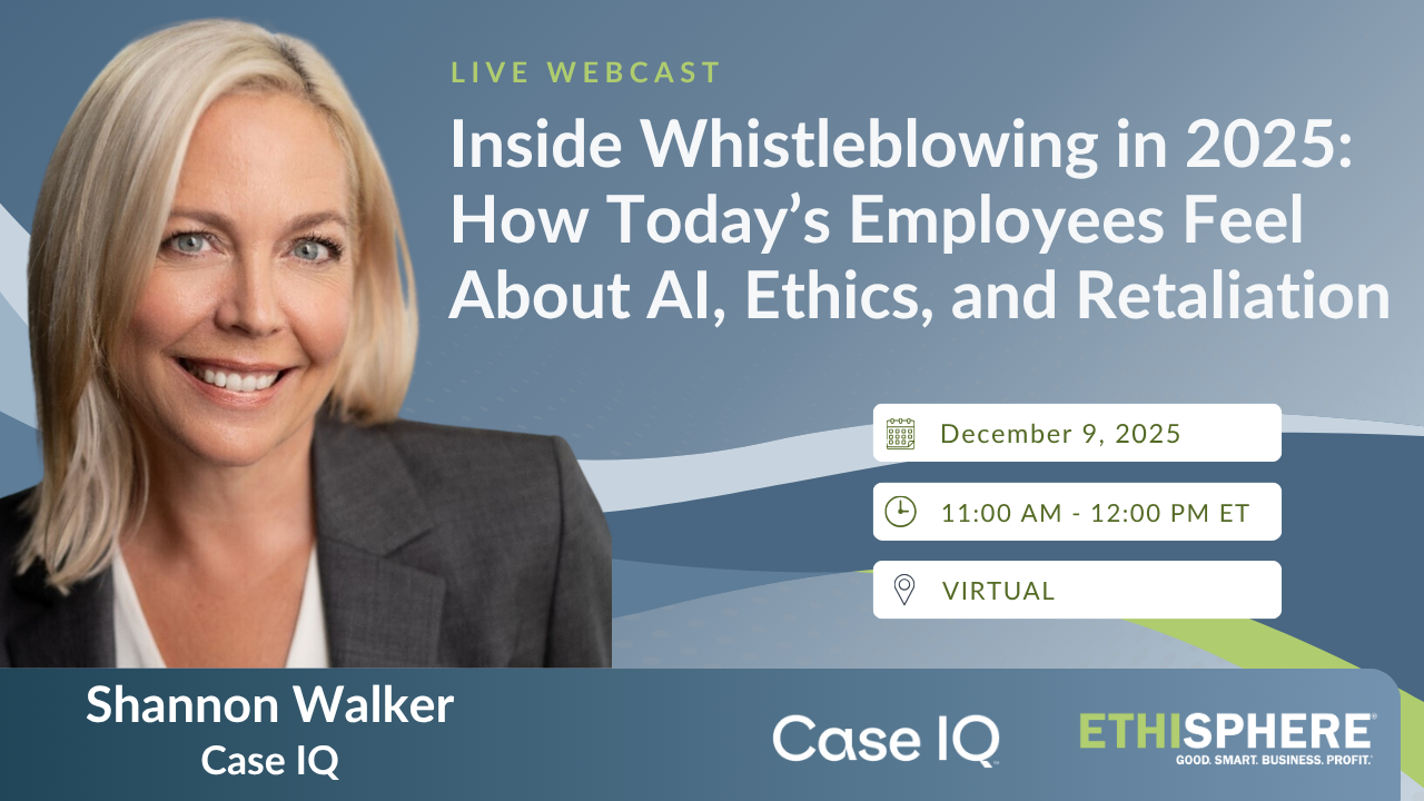 Join Shannon Walker, EVP of Strategy at Case IQ and founder of WhistleBlower Security, Inc., for a discussion on the results of Case IQ’s global survey of 1,000+ employees about comfort reporting misconduct, trust in organizational protections, and the impact of culture and leadership on ethics and whistleblowing. She will unpack the survey’s findings and share actionable strategies to strengthen your speak-up culture and reduce organizational risk.